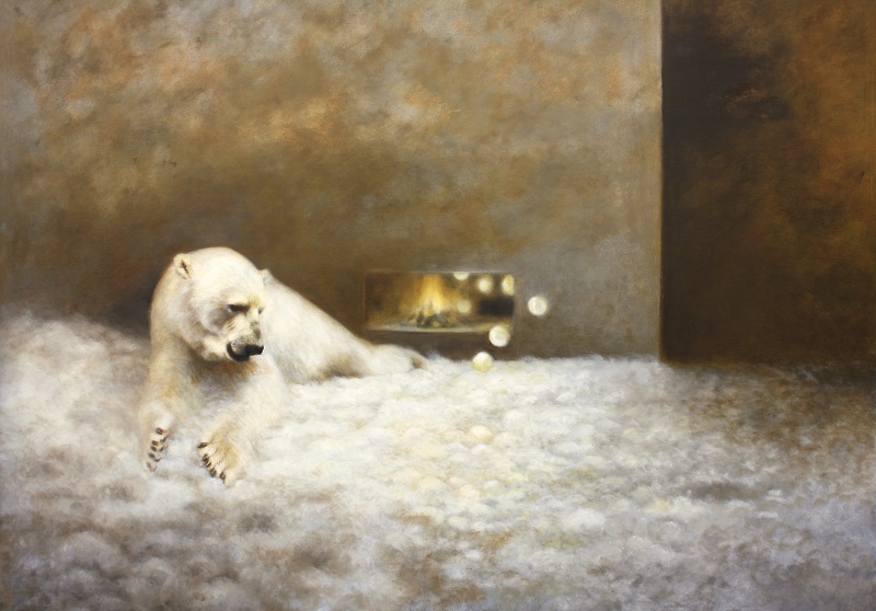 Eisbär vorm Kamin - 120x160cm